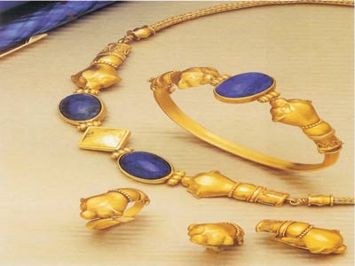 Αρχαία Αιγυπτος: Οι Αιγύπτιοι, λόγω της αφθονίας χρυσού στην ευρυτερη περιοχή της βορειοανατολικής Αφρικής, φαίνεται ότι κατασκεύασαν πρώτοι χρυσά κοσμήματα την περίοδο 5000-3000 π.Χ. Τα Αιγυπτιακά κοσμήματα χρησιμοποιήθηκαν για τον συμβολισμό κοινωνικής και θρησκευτικής δύναμης καθώς επίσης και για την συνοδεία νεκρών.